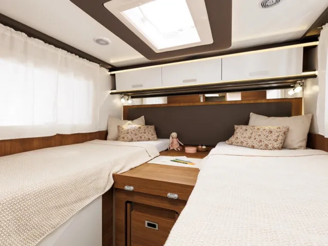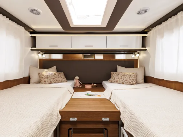 - Dve samostatné zadné postele upraviteľné na veľké dvojlôžko/dvojlôžko priečne/francúzska posteľ