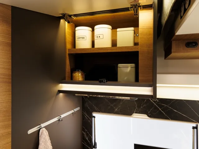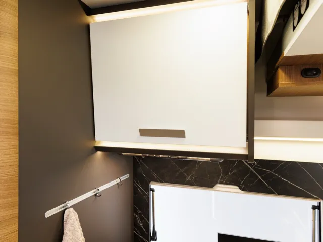 - - LED osvetlenie horných skriniek zvnútra aj zvonku