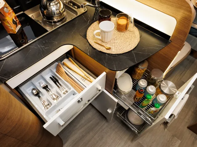 - Kovové zásuvky v kuchyni - podľa modelu