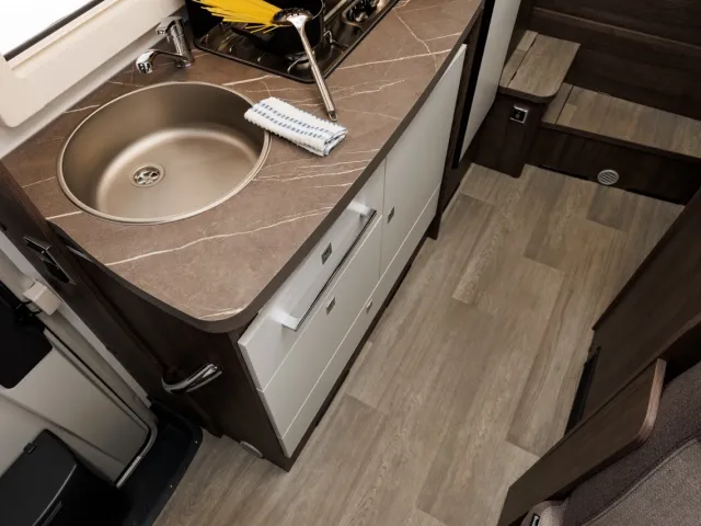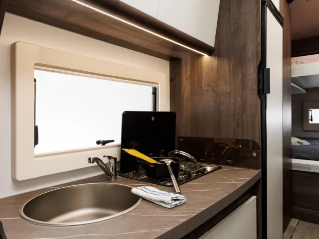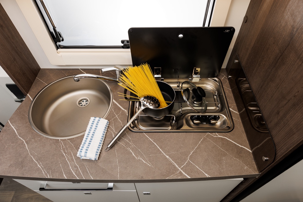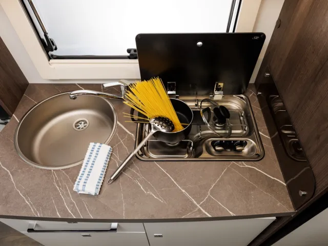 - Nerezový drez a 2 plynové varné dosky s elektrickým zapaľovaním