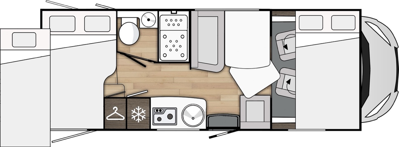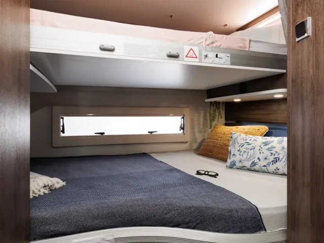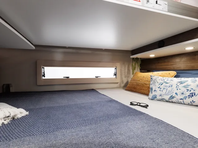 - Široké predné dvojlôžko, rozmer 203x155 (max 230kg)