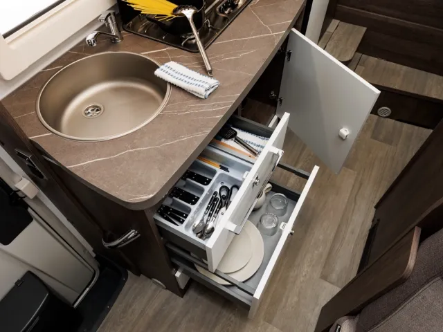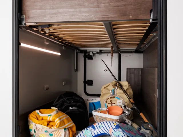 - Úložné priestory - šuflíky a skrinka pod zadnými lôžkami