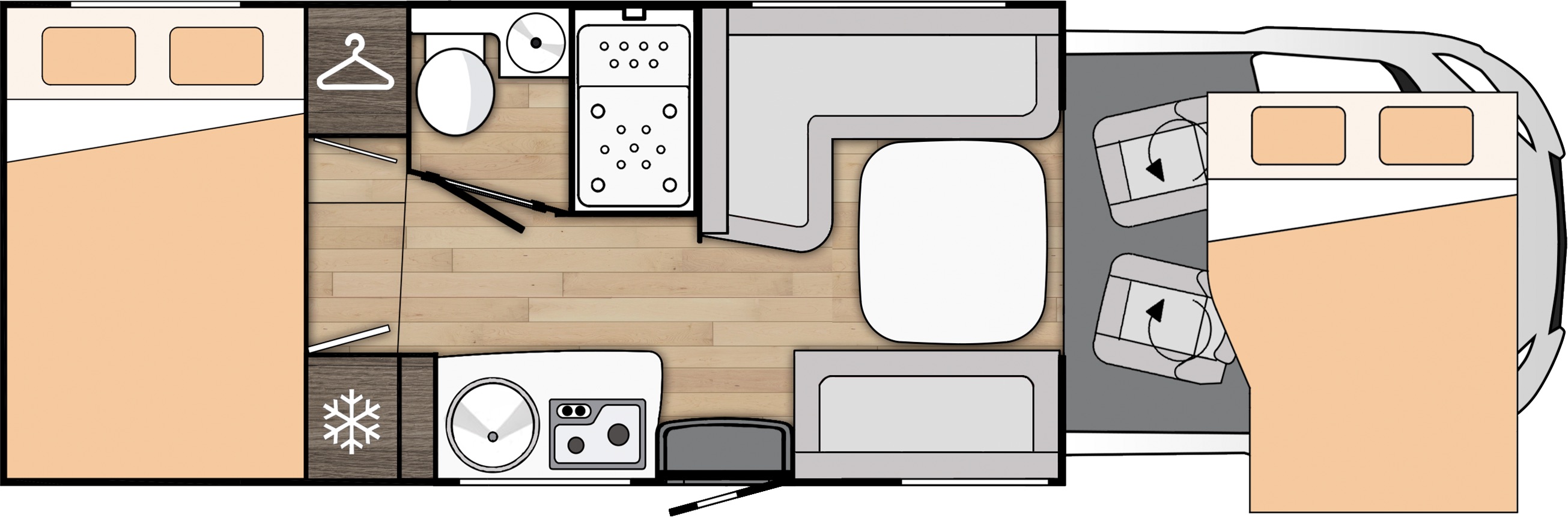 - Dve samostatné zadné postele upraviteľné na veľké dvojlôžko/dvojlôžko priečne/francúzska posteľ
