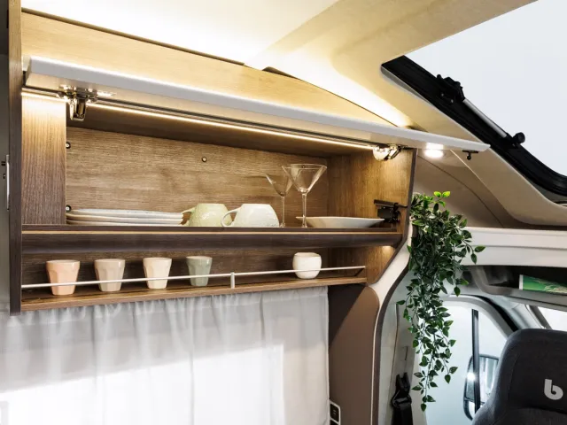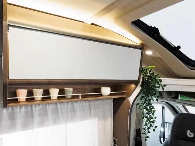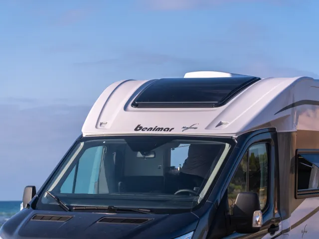 - Panoramatické otváravé strešné okno nad kabínou, s moskytierou a roletkou