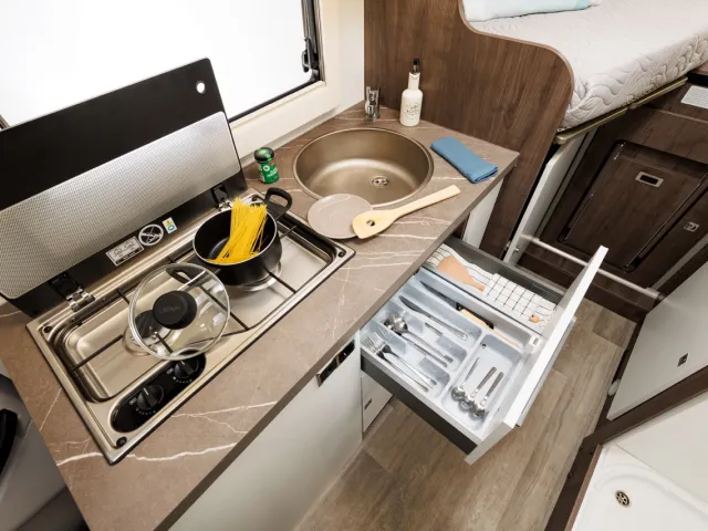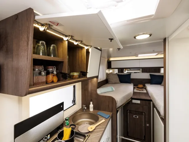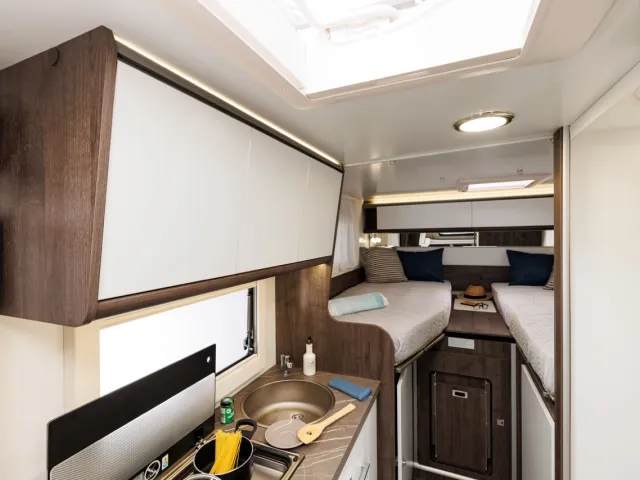 - Zadné dvojlôžko rozšíriteľné na extra rozmer 195x200cm (pre Y861)